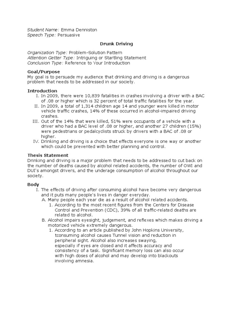 Uncategorized Texting And Driving Informative Speech Outline Speaking outlines use key words The important elements of writing an informative speech outline are having an introduction a body with main points and sub points and a conclusion